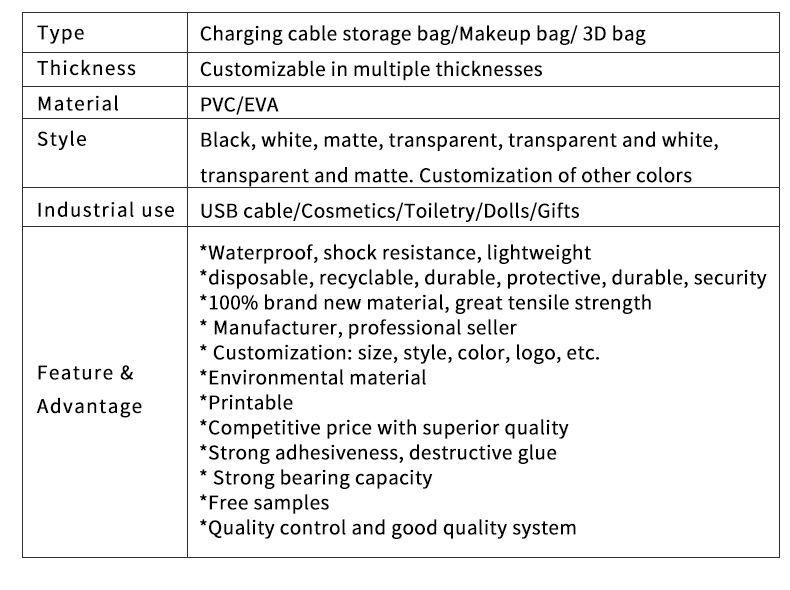 Charging Cable Storage Stand Up Pouch Zipper Bag